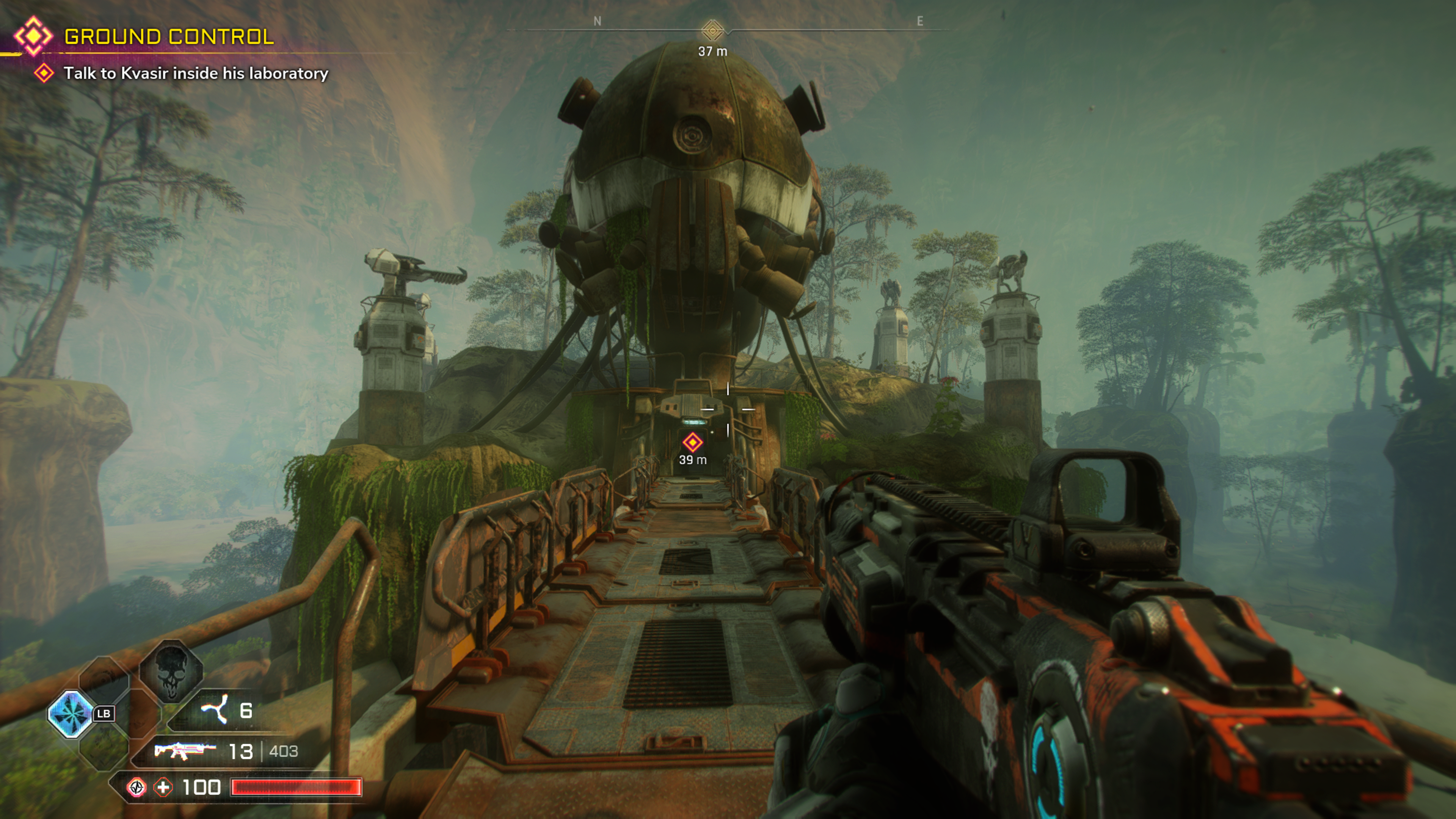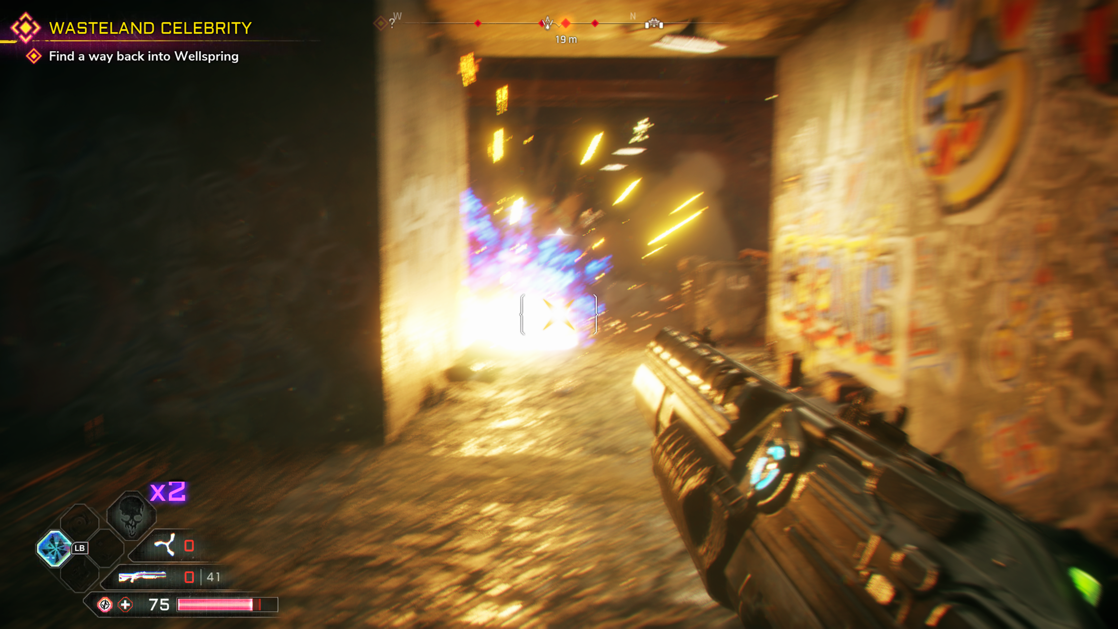 In fact, all the Nanotrite abilities, when combined with the ludicrously weaponry, makes Walker an overpowered killing machine. Dashing, Double jumping, Slamming, followed up by shotgun blasts is so satisfying, and is also the best way to play the game. Hanging back and trying to take enemies out from distance with an assault rifle will see you dying much more frequently. This is because upon their death each enemy will drop a substance called Feltrite which can be collected to increase your health. So, its always best to get in and amongst the action. The shooting does feel very Doom-esque and this is Rage 2’s greatest positive.